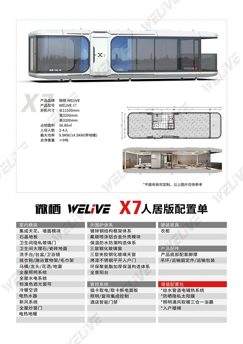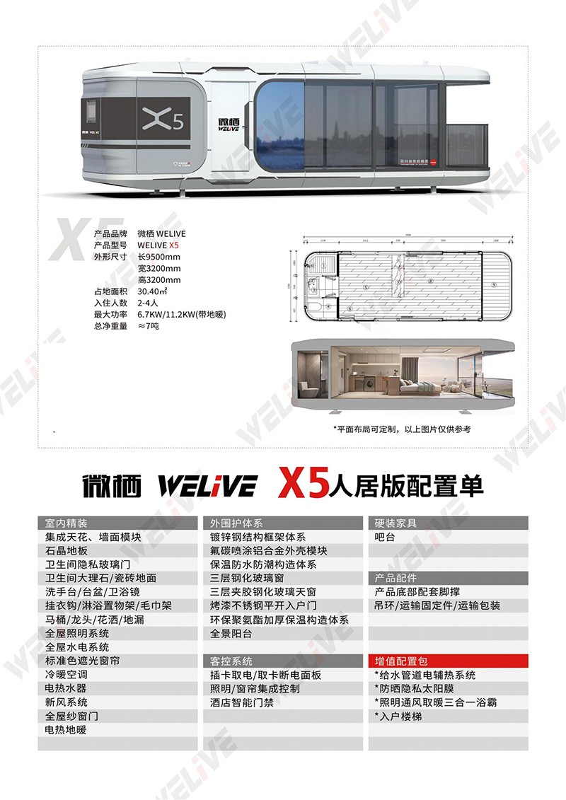 在主題公園中,太空艙移動房屋可以作為特殊的住宿設(shè)施,里面臥室、盥洗間、淋浴間、衛(wèi)生間、活動間精巧布置,門窗、燈飾、窗簾、電視均為智能化聲控。透過玻璃鋼幕墻室外風(fēng)景一覽無余,為游客提供獨特的住宿體驗,讓他們感受到與眾不同的旅行樂趣。
